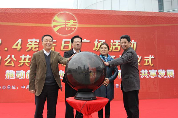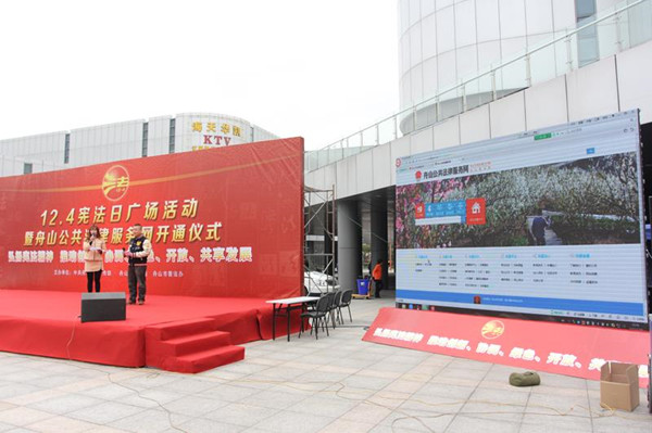 12月4日上午,市委宣传部、市司法局、市普法办在新城乐购广场联合举办以“弘扬宪法精神,推动创新、协调、绿色、开放、共享发展”为主题的“12.4”宪法日广场活动暨舟山公共法律服务网开通仪式。省司法厅副厅长吉永根、市政协副主席陈松菊出席活动。