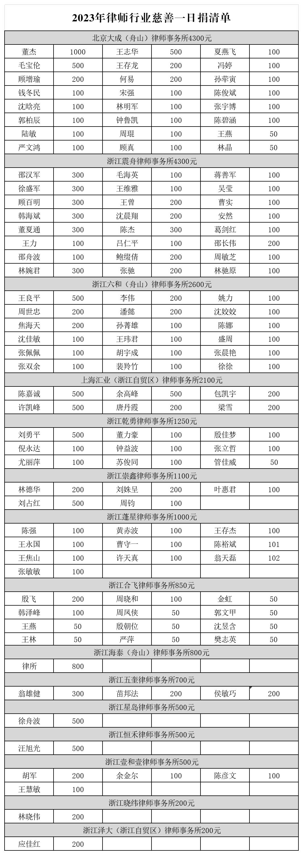 2023年度全市律师事务所“慈善一日捐”名单