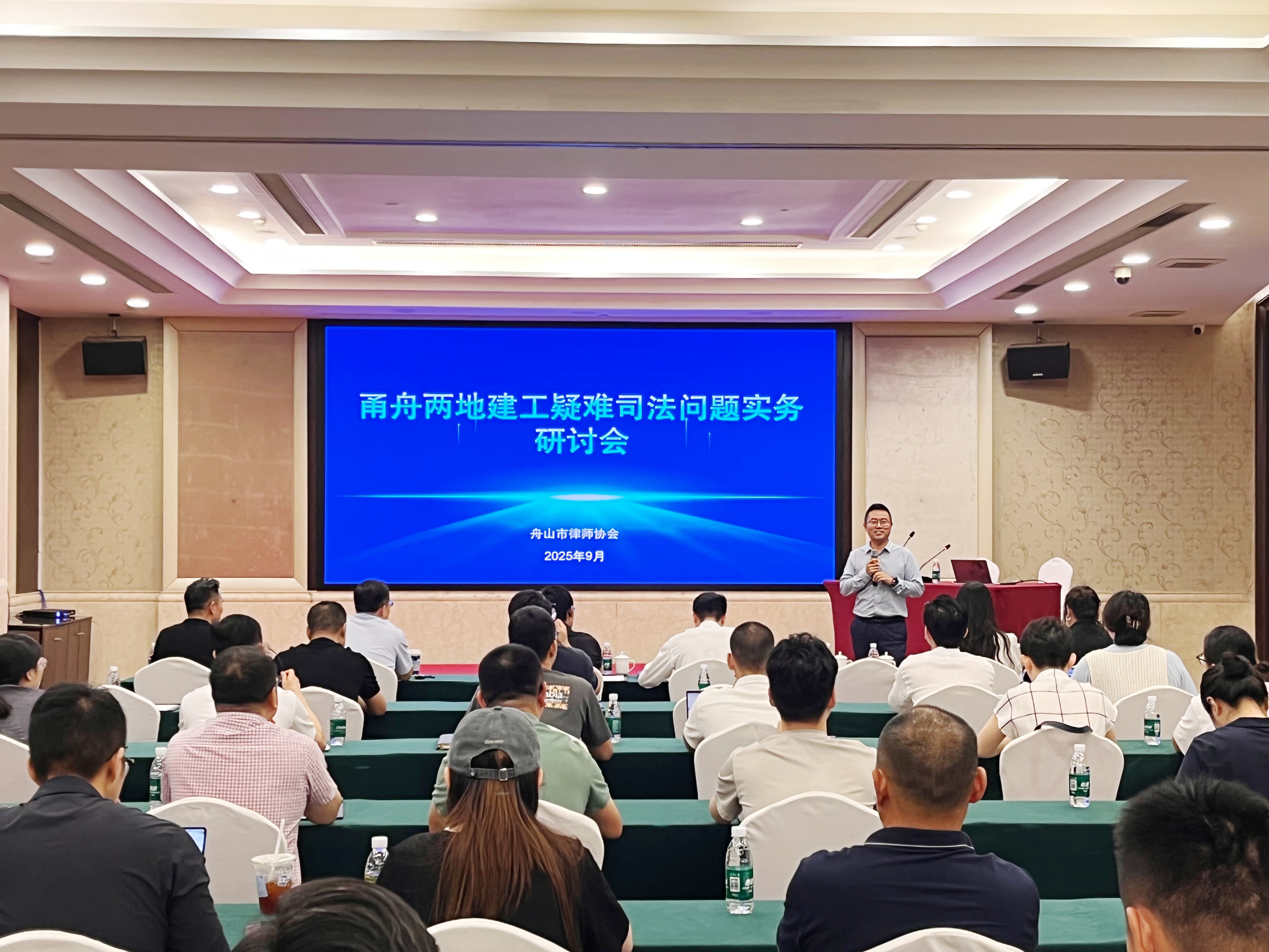 2025年9月20日,舟山律协房建专委和宁波律协房建专委在舟联合主办了“舟甬两地建工疑难司法问题实务研讨会”。本次会议聚焦建工领域的热点难点法律问题,特邀四位资深律师作专题分享,五十余位舟甬两地律师参会,舟山律协副会长高培芳到会并讲话。现场交流气氛热烈,学术氛围浓厚。
