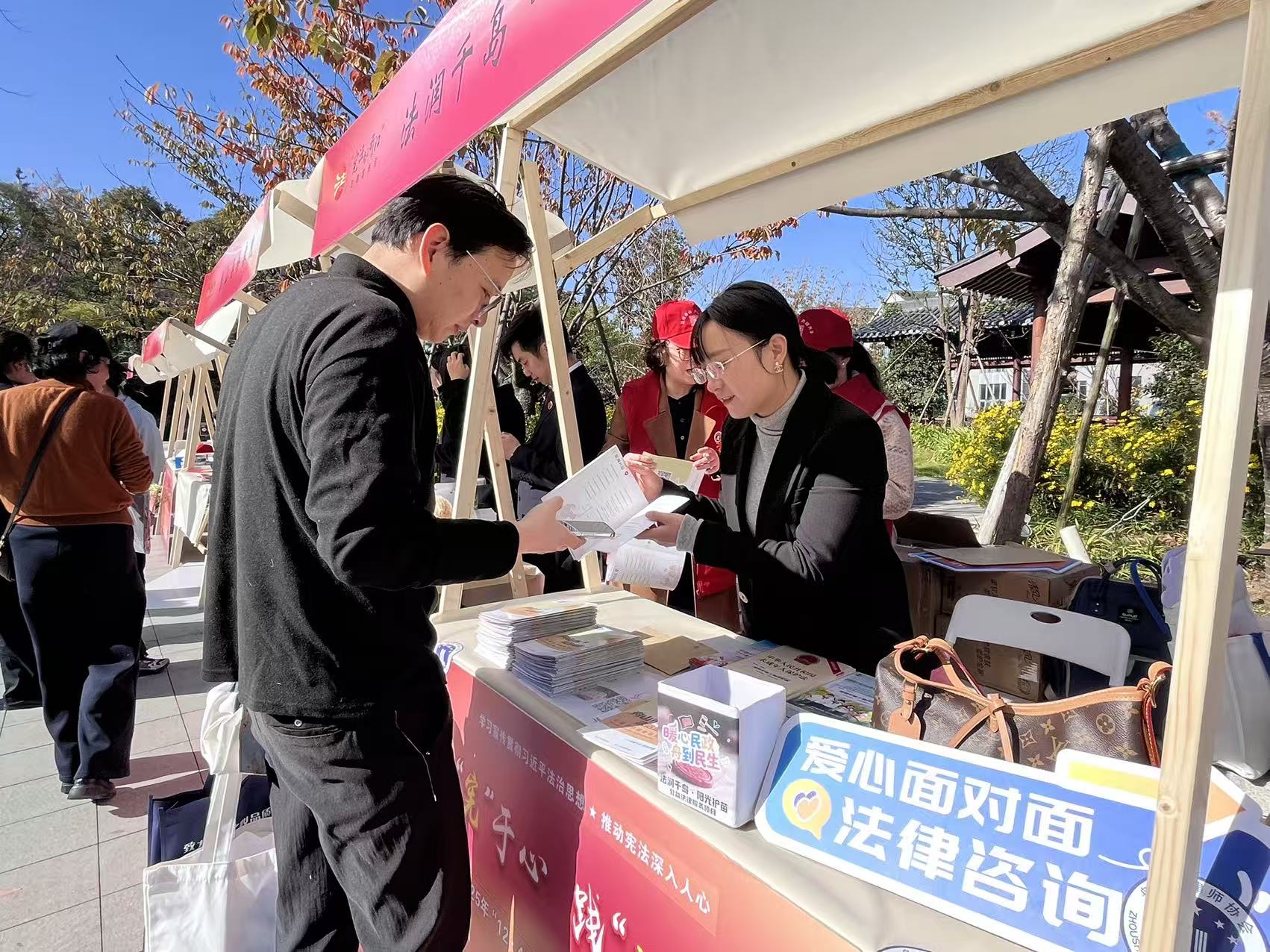 为深入学习宣传宪法,扎实推进未成年人权益保护工作,2025年11月29日,岱山县2025年“国家宪法日”主题宣传活动在岱山蓬莱公园热力启幕。一场集趣味性、互动性与实用性于一体的“法治市集”同步开市,市律协“法润千岛・阳光护苗”公益法律项目团队的律师积极参与,来自浙江蓬星律师事务所和浙江几道律师事务所的律师们为未成年人等群体送上了一场 “零距离” 的法治盛宴。