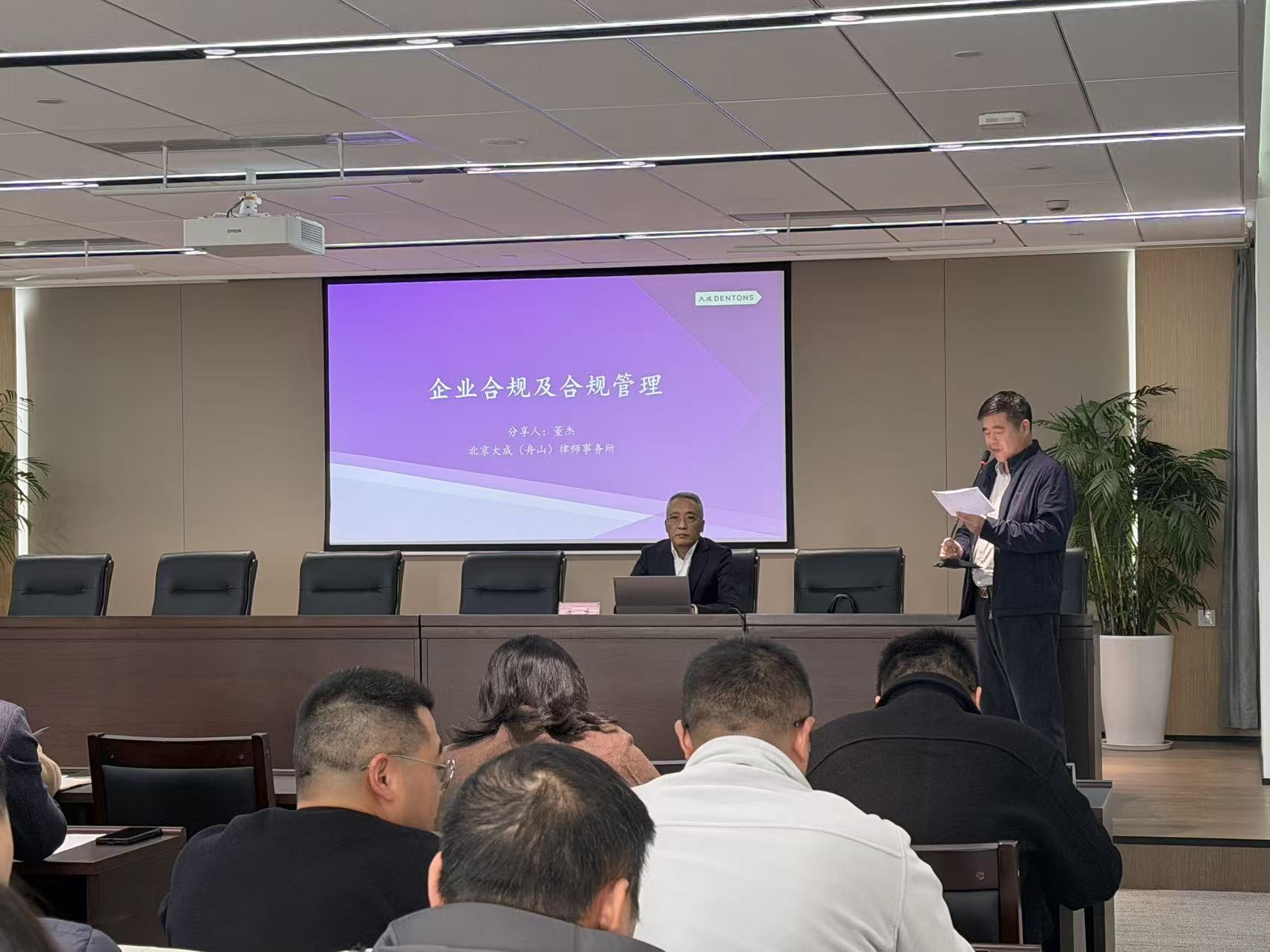 2025年12月16日,北京大成(舟山)律师事务所主任董杰律师受邀为舟山交投建设开发有限公司开展主题为《企业合规及合规管理》的讲座,该公司及下属企业60余名工作人员与会聆听。